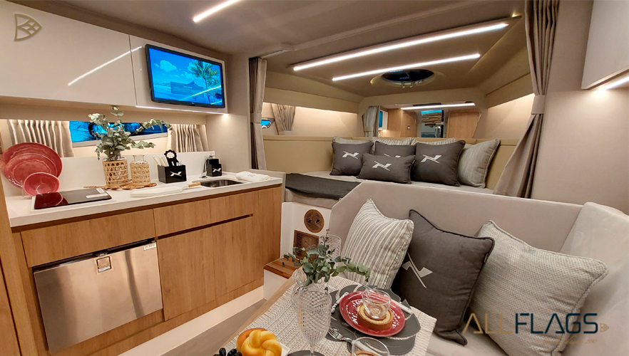A Lancha NX400HT Horizon hoje representa o que há de mais moderno na sua categoria, oferecendo luxo, sofisticação, espaço e um acabamento premium que a colocam à frente de tudo que existe comparado às outras 40 pés do mercado. A Lancha NX400 ainda é projetada sob medida para quem procura conforto, espaço e acabamento com o requinte que só uma HARDTOP oferece.