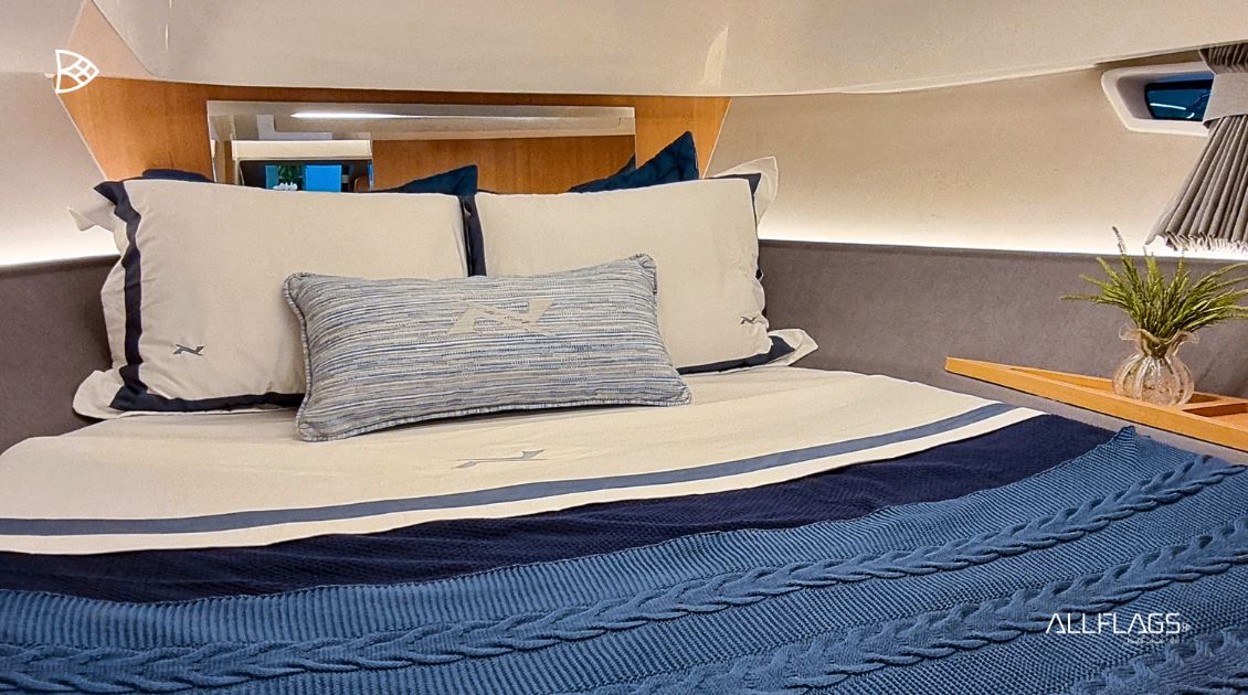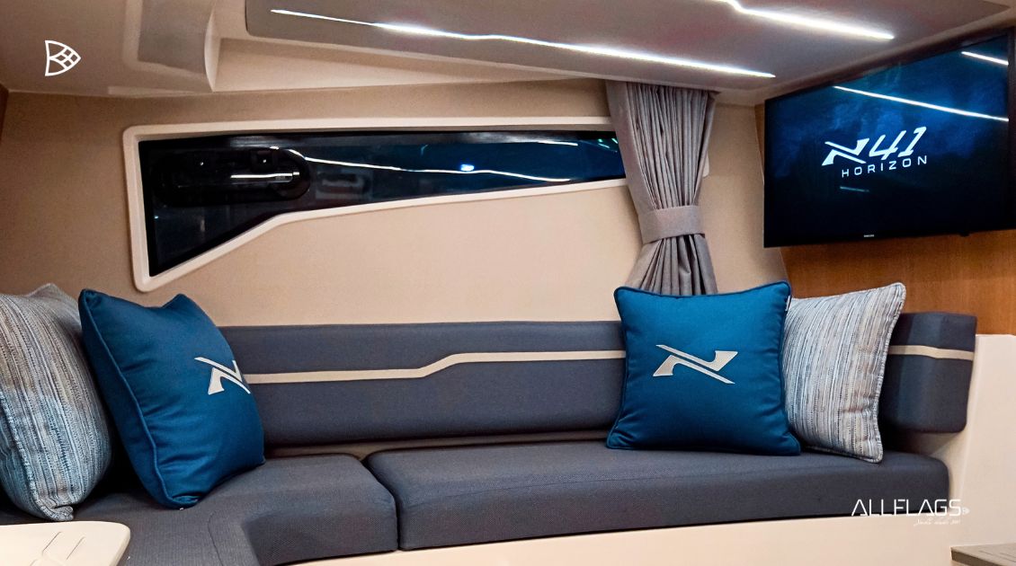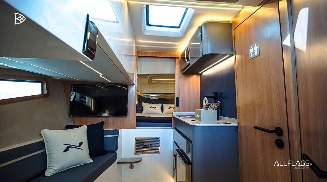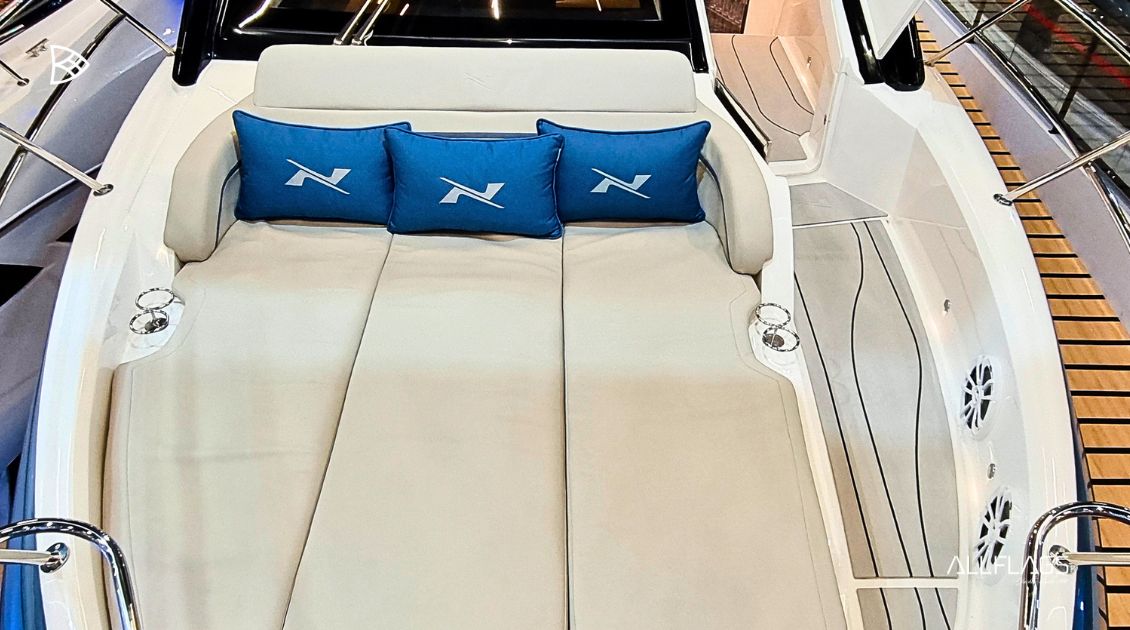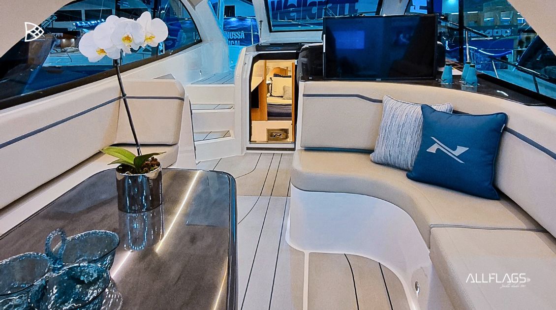 O interior da NX41 foi cuidadosamente elaborado para oferecer o máximo em conforto e elegância. Ambientes amplos e funcionais, janelas generosas que permitem a entrada de luz natural criam uma atmosfera acolhedora e refinada. A bordo, o cockpit espaçoso convida para momentos de socialização e relaxamento, enquanto a cabine principal, a cabine de meia-nau e a sala de estar oferecem todo o conforto que você espera de uma lancha premium. Cada detalhe foi pensado para garantir uma experiência única para você e seus convidados, tornando a NX41 referência em lanchas sofisticadas.