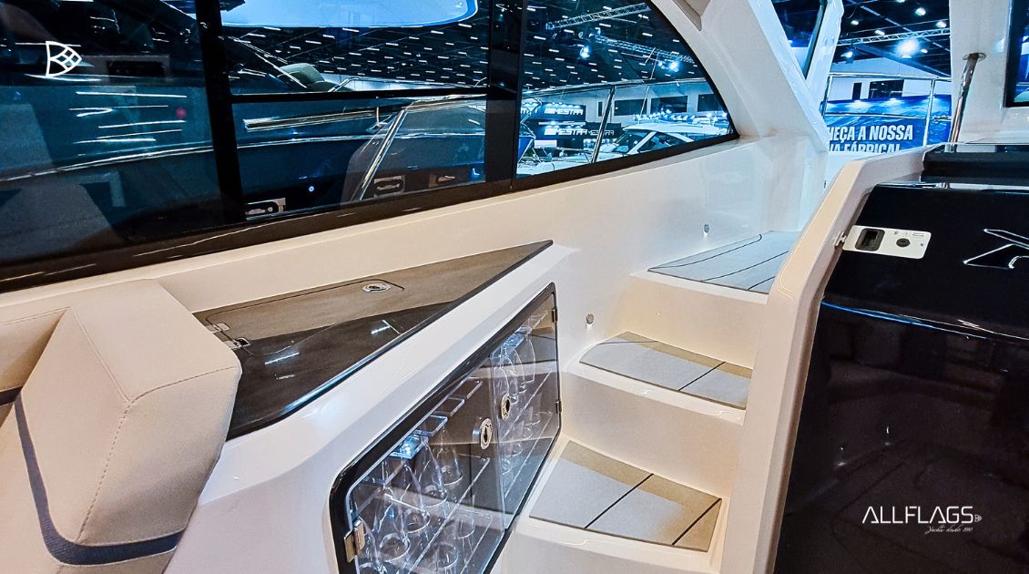 O design da lancha NX41 é uma verdadeira obra de arte na água. Suas linhas arrojadas e aerodinâmicas refletem a união perfeita entre forma e função. Com a exclusividade do hardtop, a NX41 combina inovação com uma estética contemporânea, proporcionando eficiência hidrodinâmica e uma presença marcante em qualquer marina. Descubra como a NX41 eleva o conceito de lancha de luxo para um novo nível.